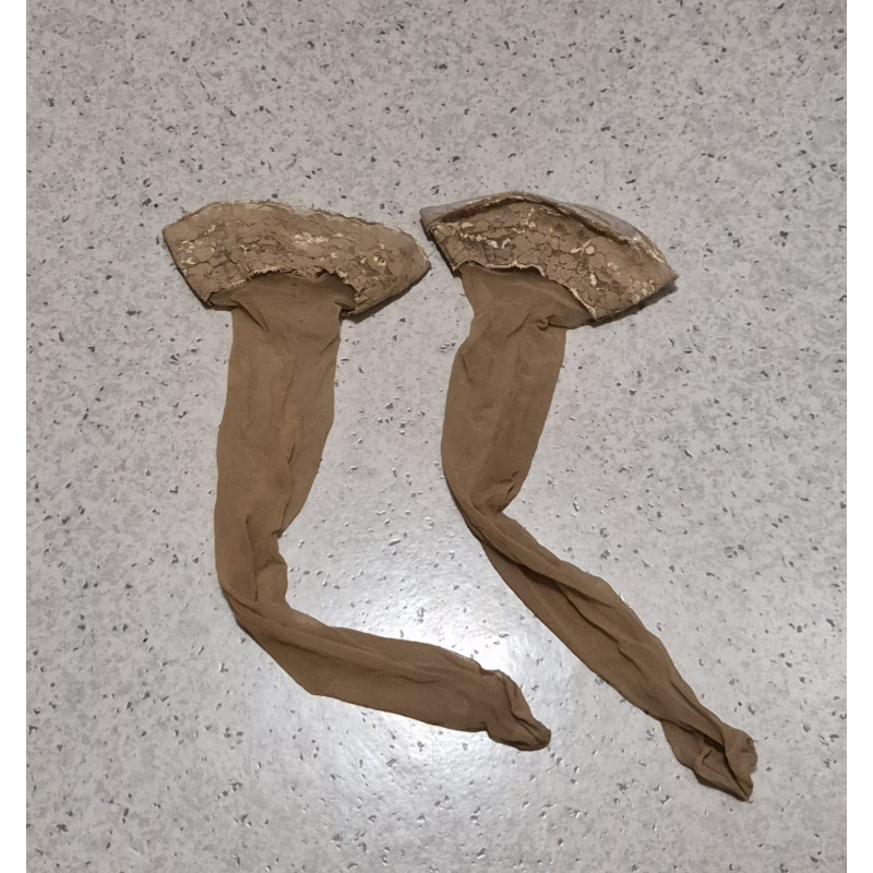 Hier trenne ich mich von meinen geilen halterlosen Nylons in beige. Ich hatte sie sehr oft an und ich werde sie auch ein letztes Mal für dich tragen und mit meinem P*ssysaft veredeln. So werden sie zu ganz besonderen Liebhaberstücken.