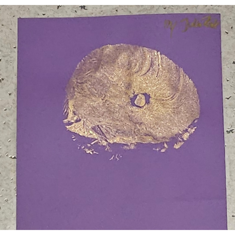 Einen goldenen Abdruck meiner Brust, auf lila Hintergrund, sieht nicht nur Edel aus, es ist ein absolutes Einzelstück.
