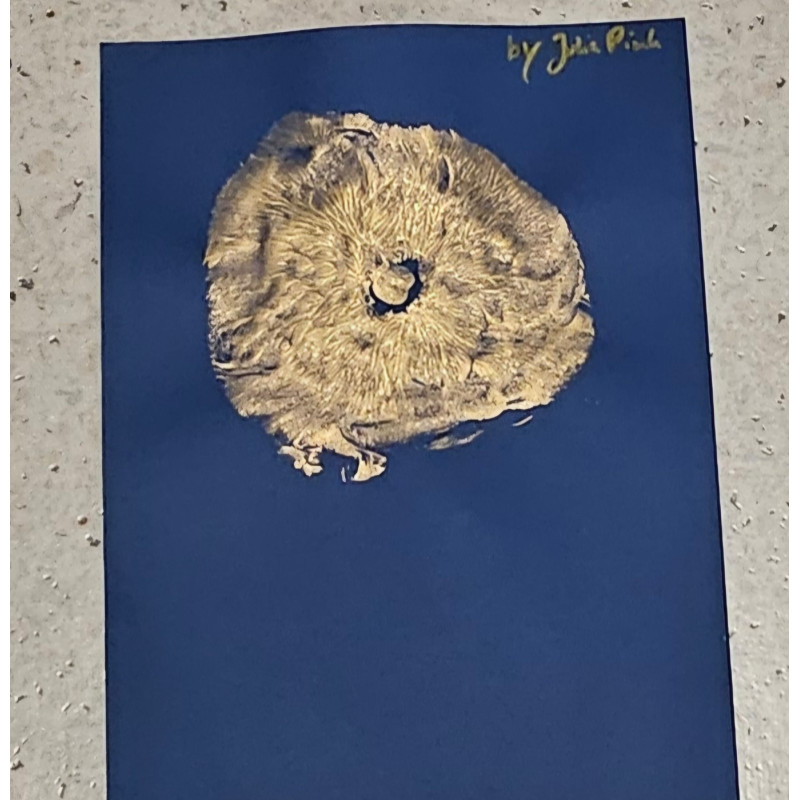 Ei Abdruck meiner Brust in Gold auf blauem Hintergrund, wirkt das nicht unfassbar edel? Dann hole dir hier dieses ganz besonders erotische Kunstwerk zu dir und hänge meine Brust an deine Wand ;-)